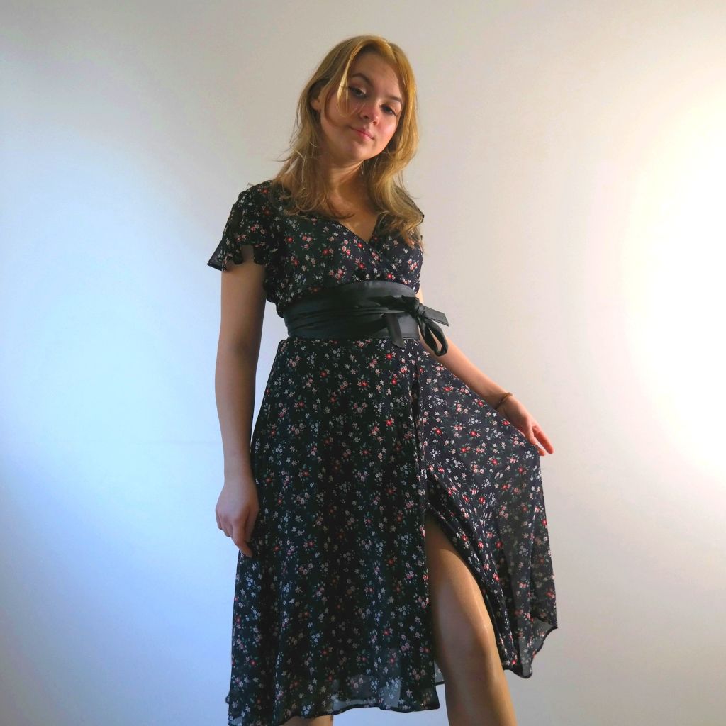 Like a flower in the meadow, beautiful, floral ornament embellished dress.